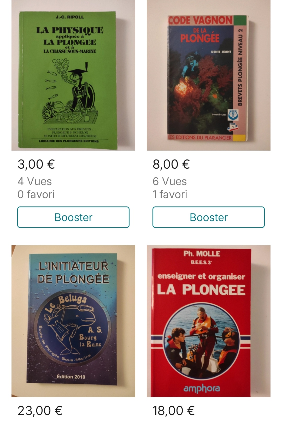 Lots de livres en lien avec la plongee